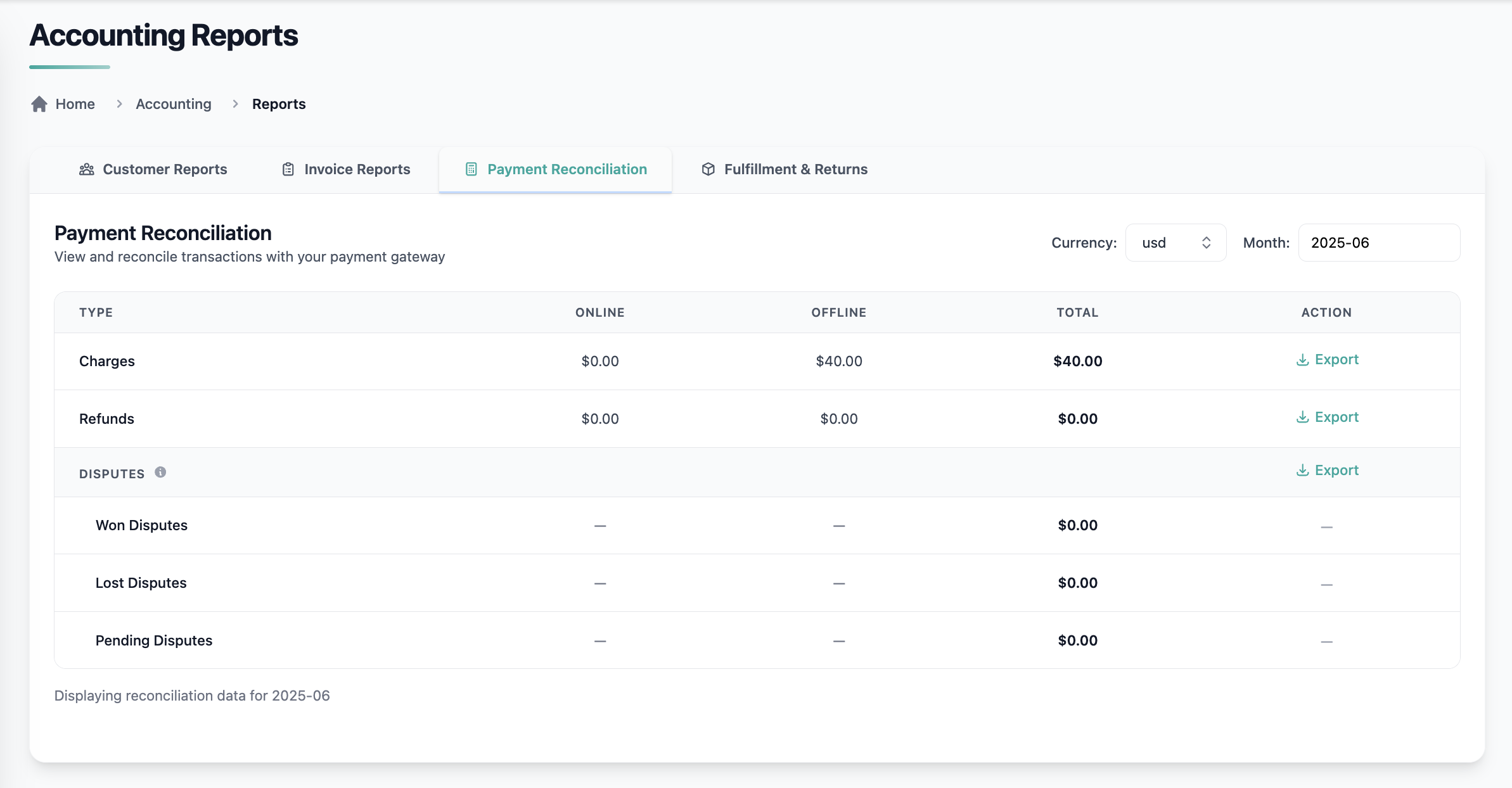 - Dispute exports now correctly export actual dispute records (not underlying charges).