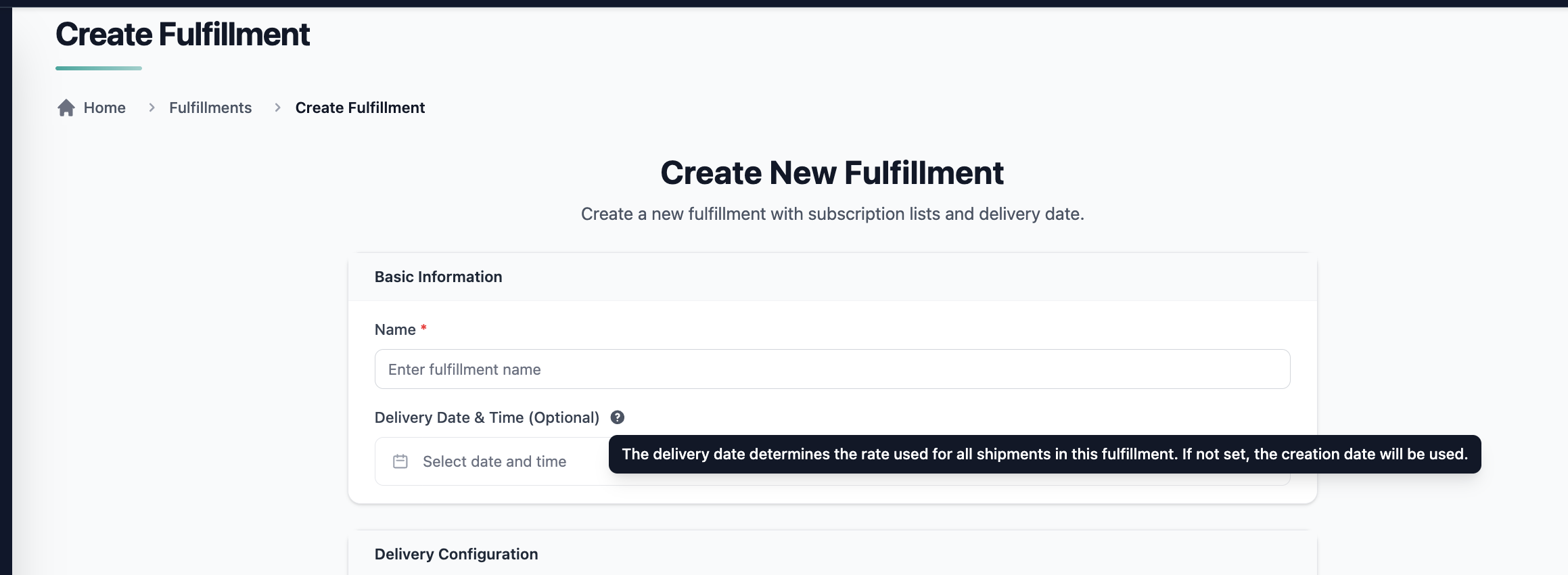 - A new optional Delivery Date field is available during fulfillment creation.