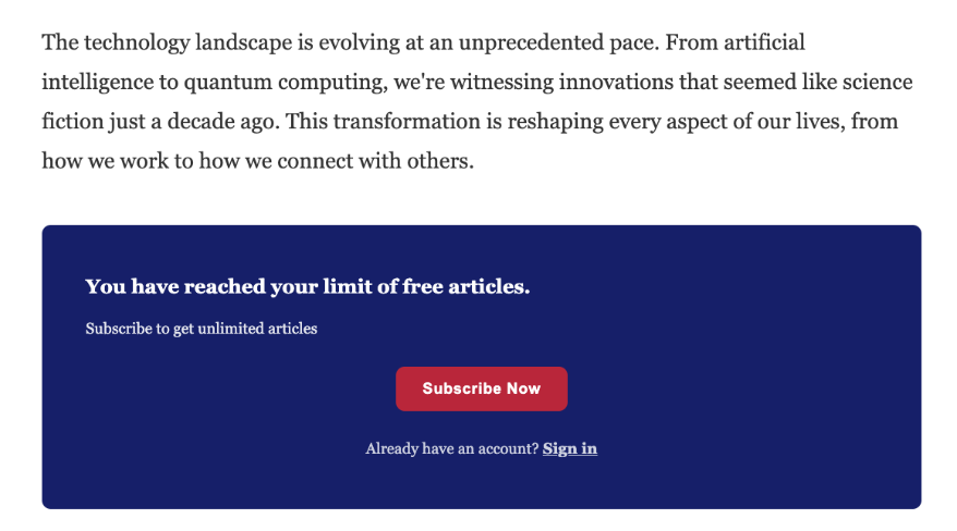 We now support an inline subscription paywall in our new UI version, allowing publishers to display subscription options directly within the content — creating a smoother, higher-converting experience for readers.