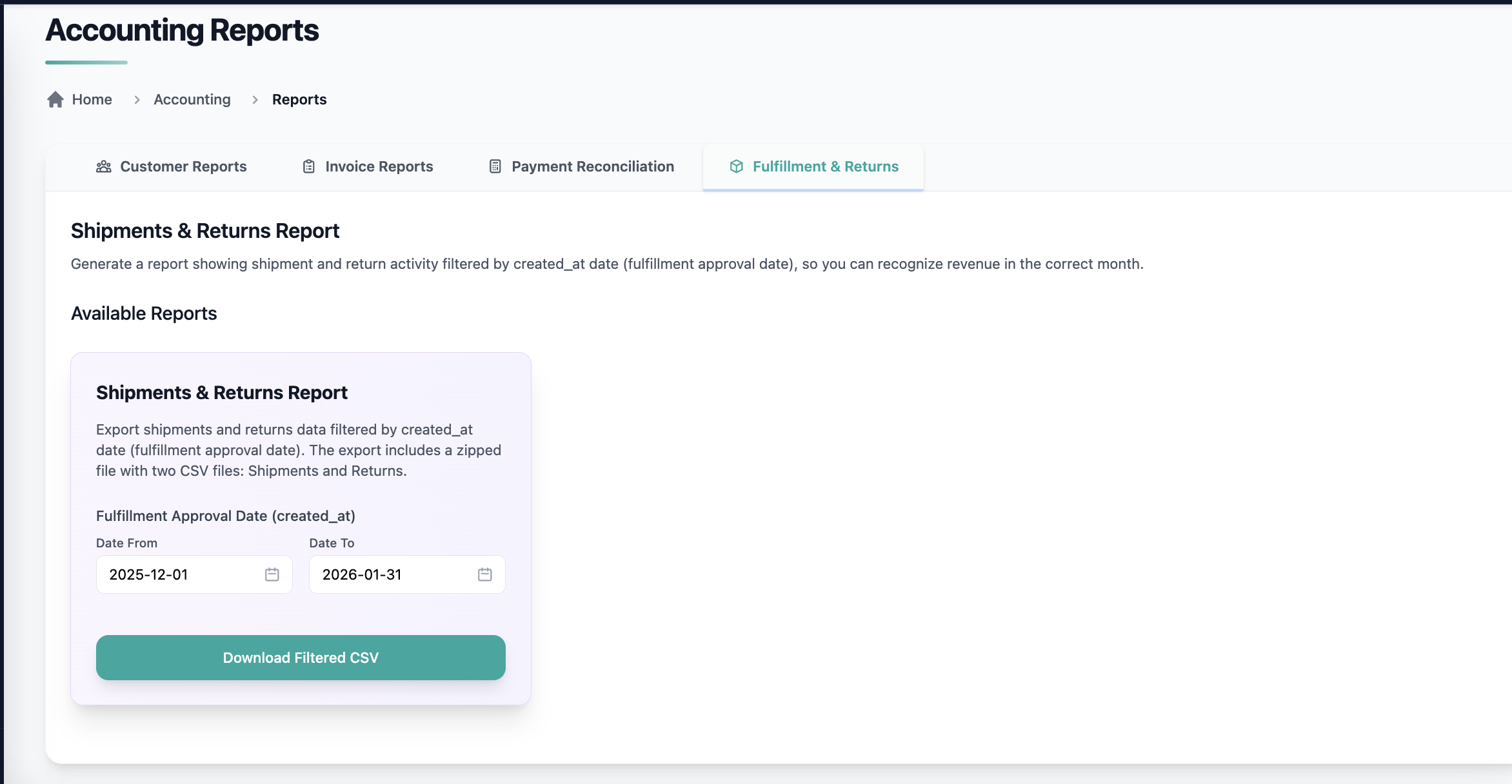 We’ve added a new Shipments & Returns report to give finance teams clearer visibility into shipment and return activity based on when fulfillments were actually created—supporting more accurate monthly revenue recognition.