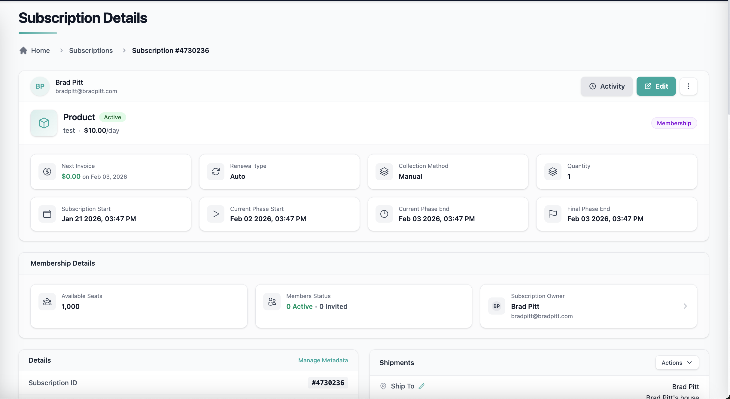 - A fully redesigned Subscription Details page built with Pelcro’s latest UI components.