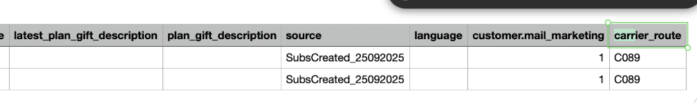 We’ve added the Carrier Routes field to the Fulfillments Export when Address Cleansing is enabled. The field is appended in a way that avoids breaking changes to existing exports.