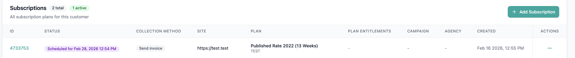 - A new “Scheduled start date” field is available when creating a subscription.