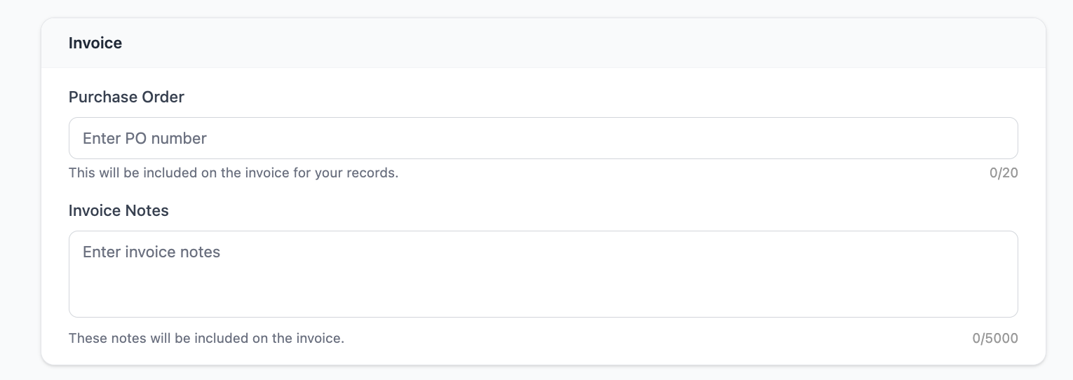 - The invoice footer now supports up to 5,000 characters for notes.