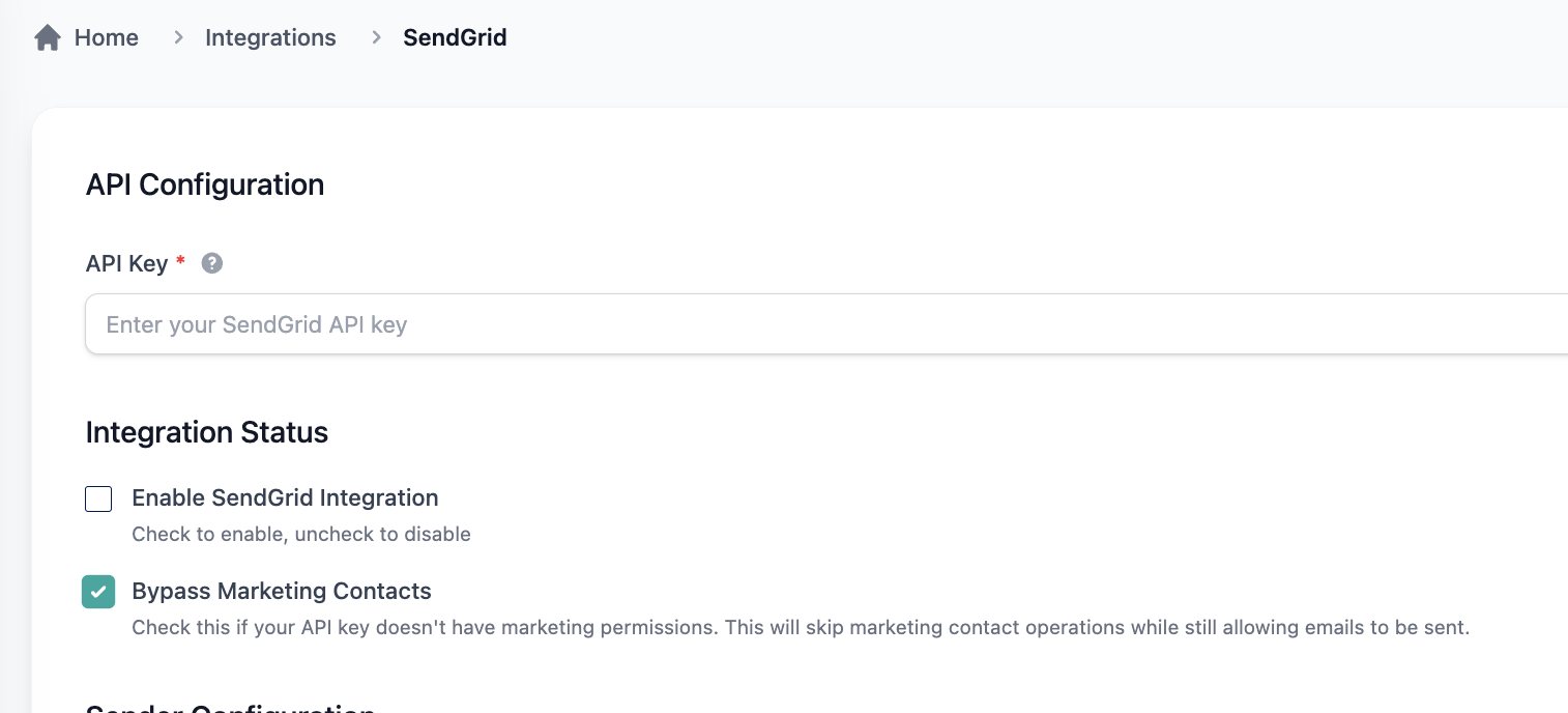 We’ve introduced a new configuration option for the SendGrid integration to improve flexibility for accounts without marketing permissions.