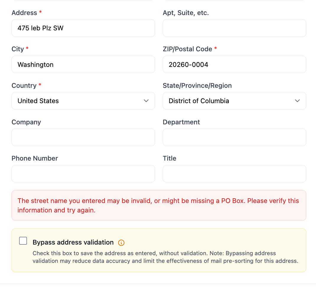 Pelcro’s Address Cleansing feature uses CASS-certified software and USPS methodologies to automatically validate and standardize shipping addresses within the United States.