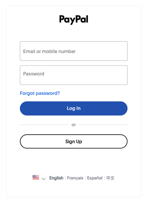 - Once you click “Log in with PayPal,” you'll be redirected to PayPal’s login flow. Enter your PayPal credentials.