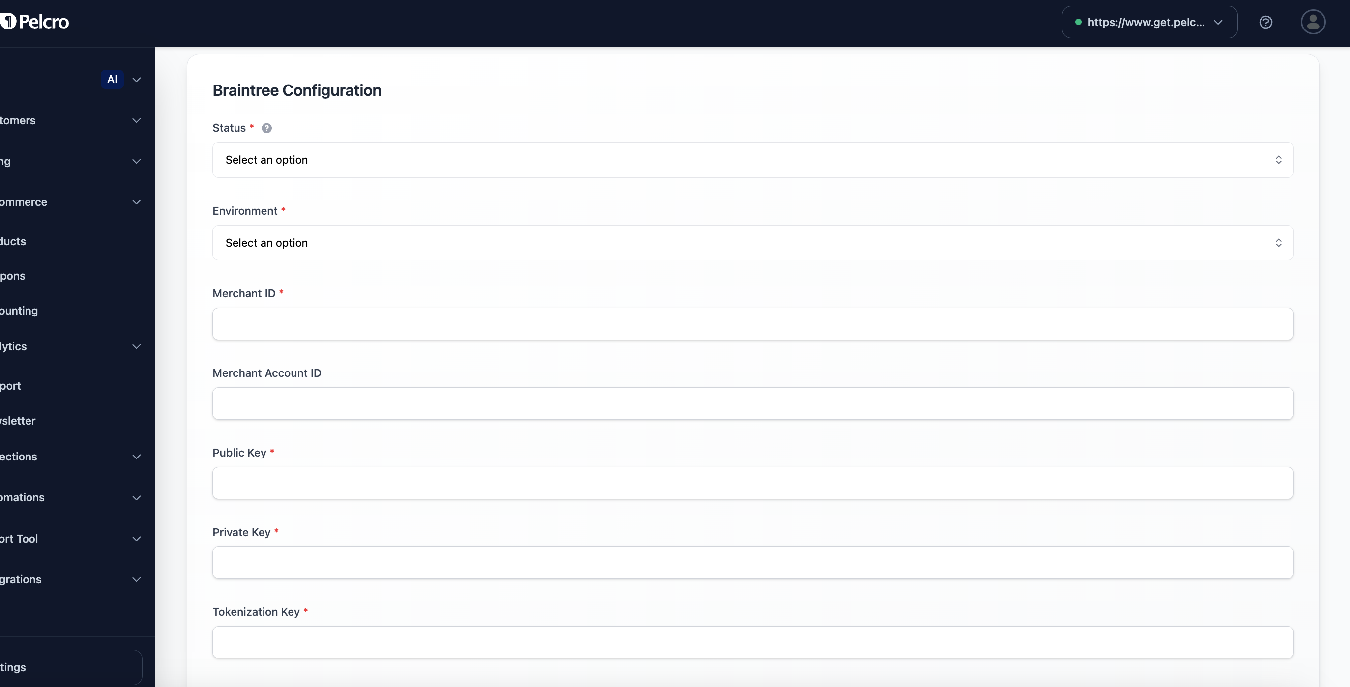 After setting up Braintree and linking it to PayPal, you’ll need to add these details in Pelcro: