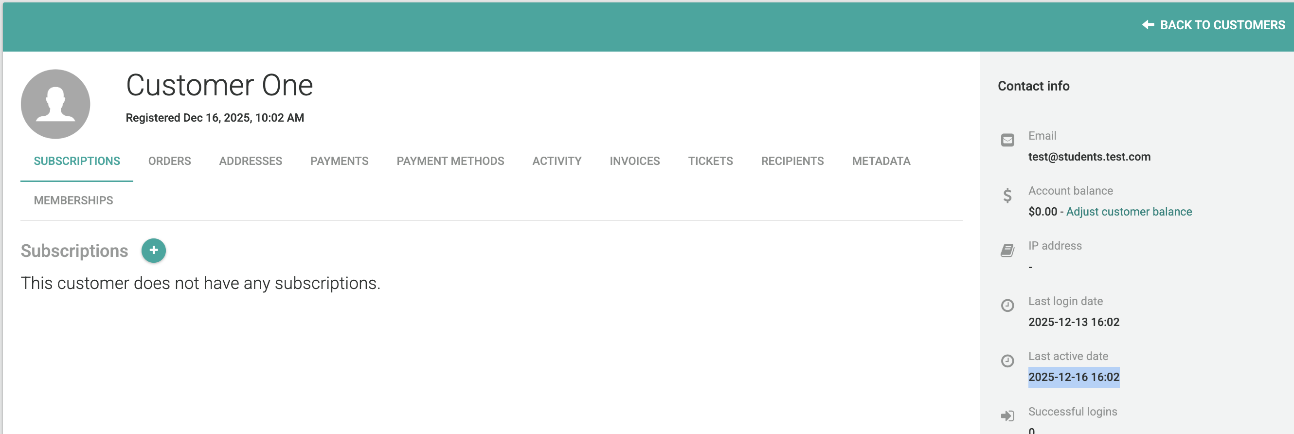 - You'll be redirected to the customers page, where you can view and manage all your current customers, and create new ones.