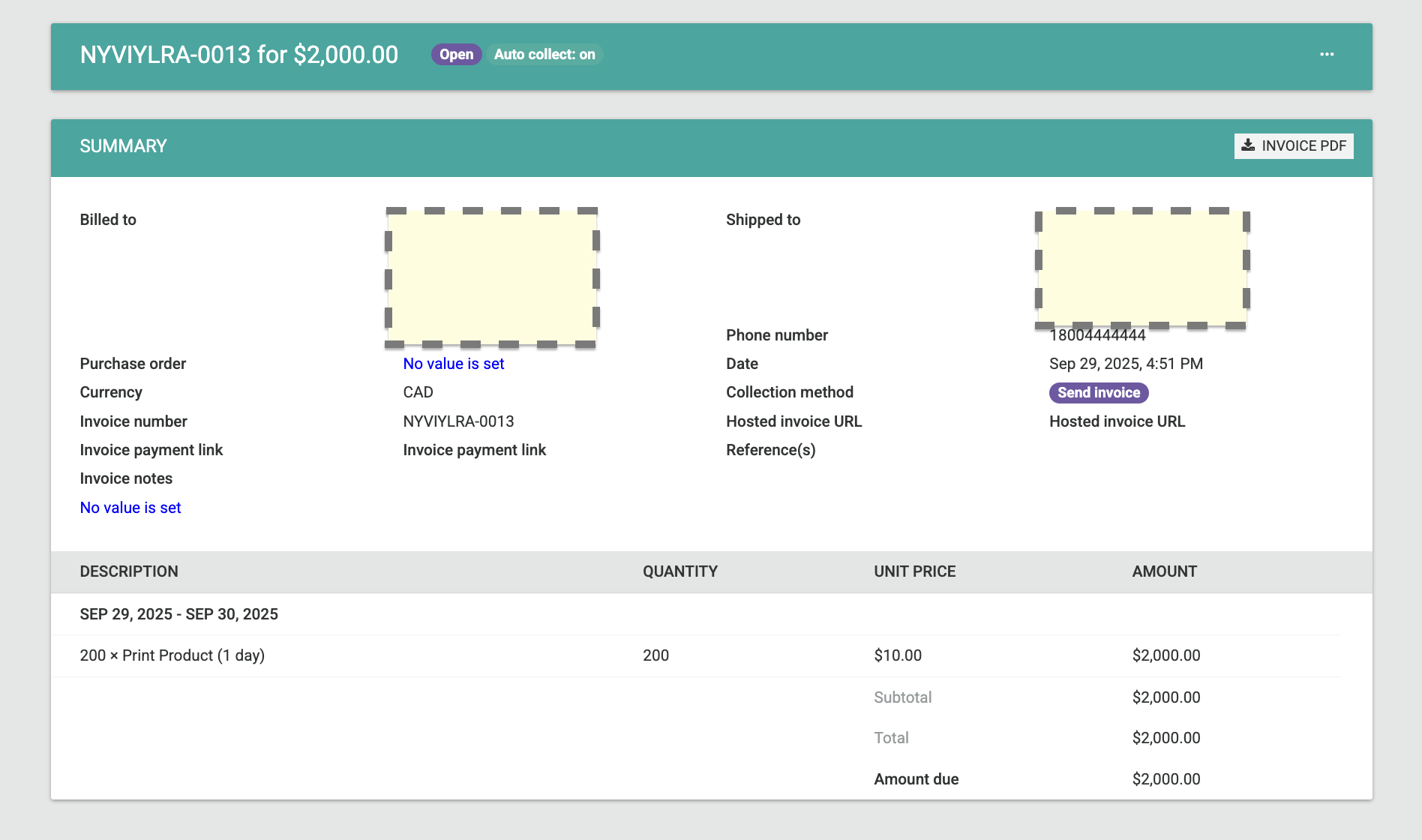 - Collection method: This is set to either "Manual" or "Automatic", depending on how the subscription was set up.
