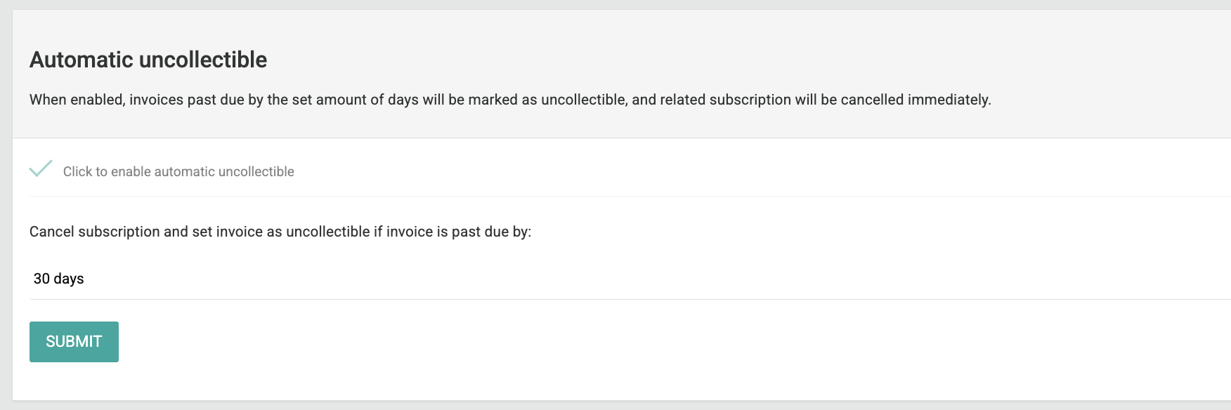 - If an invoice has a Due Date, the platform uses that date to determine when the invoice becomes uncollectible.