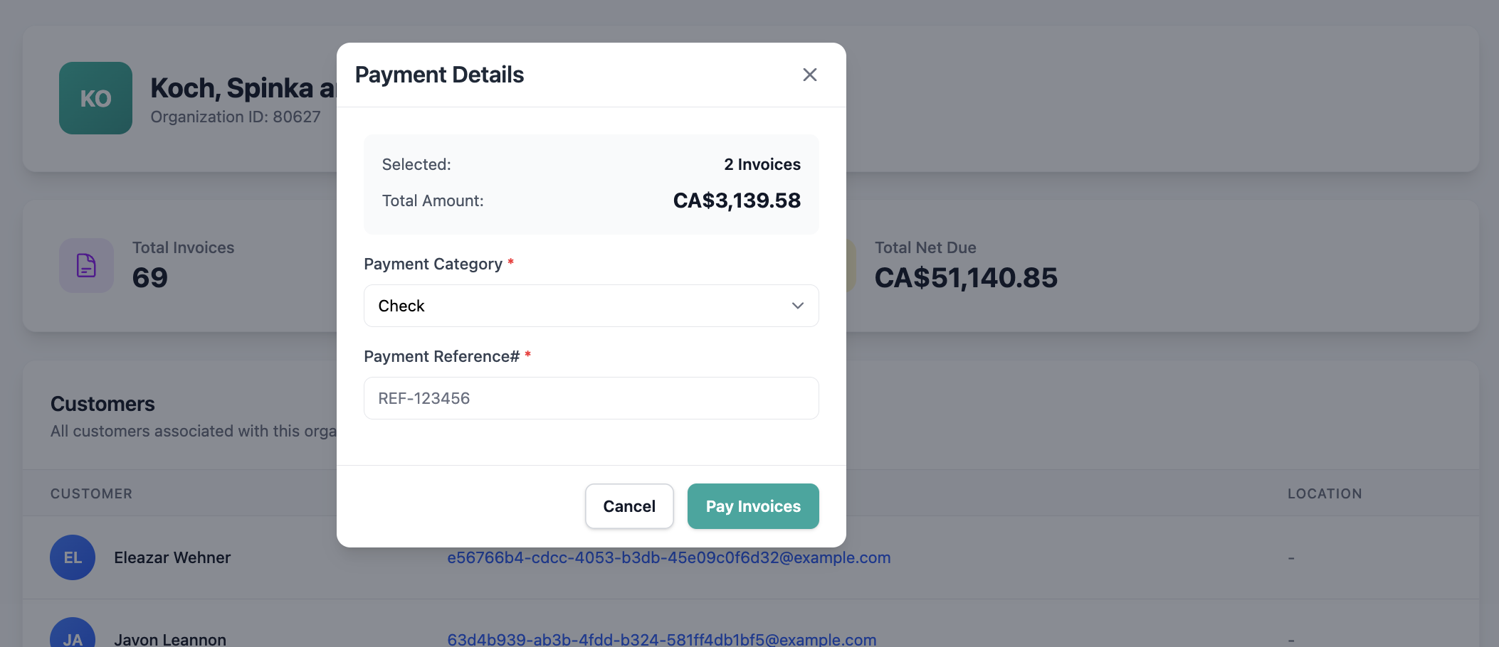 The Organizations feature allows you to manage customers and invoices grouped under a single organization. It provides a high-level view of organization-level balances and a streamlined workflow for reconciling multiple invoices at once.