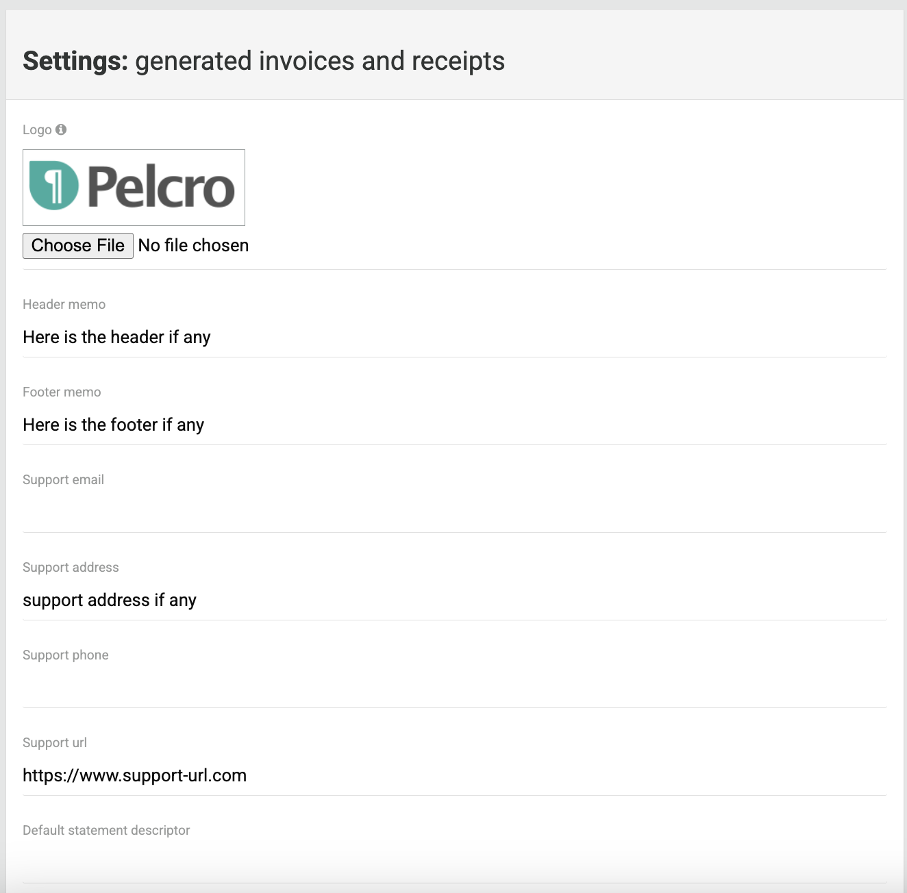 - Save your settings — all future invoices and receipts will use Pelcro’s PDF generator.