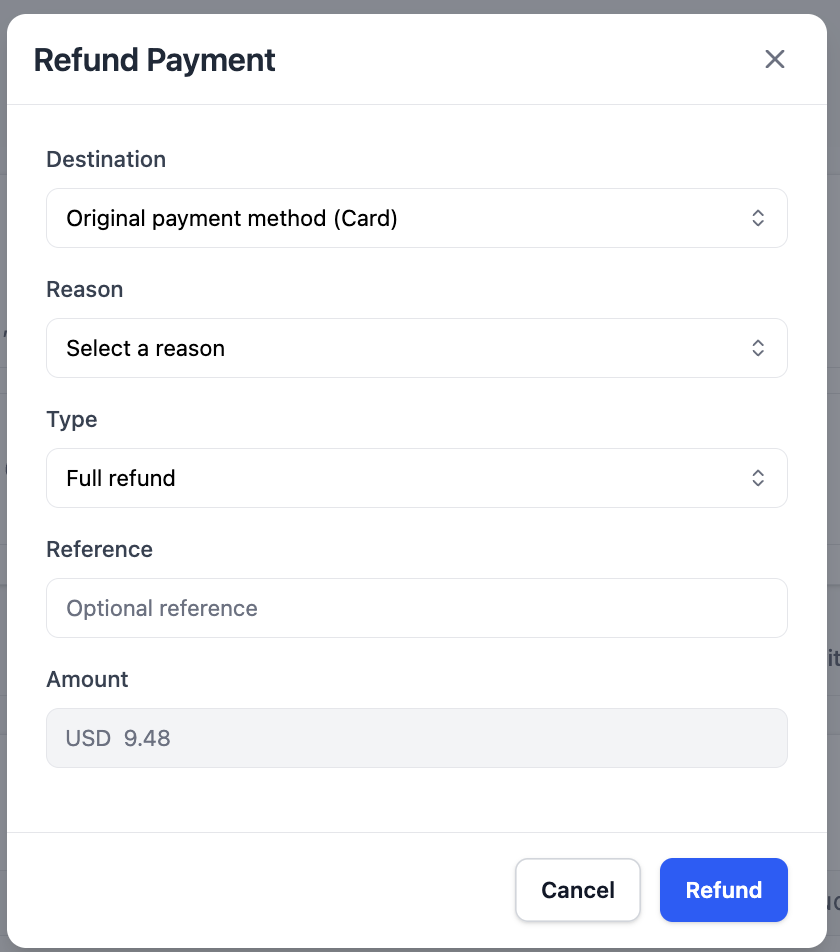 - Full refund — the entire payment amount is returned to the customer.
