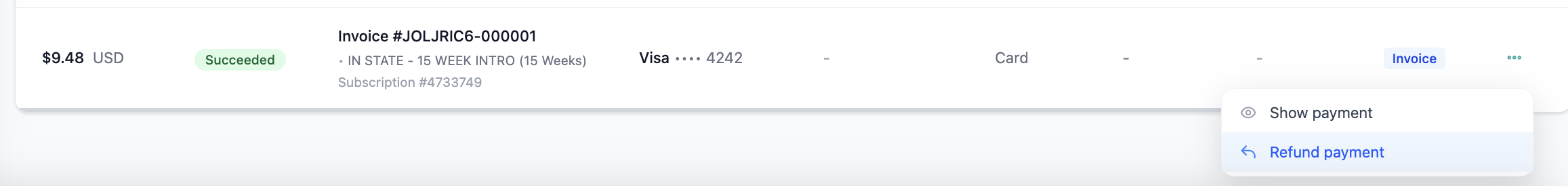 - Click the three-dot menu and select Refund payment.