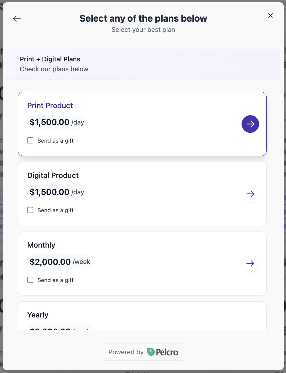 If you plan to use Pelcro’s frontend UI (checkout, customer portal, and hosted flows), connect a payment gateway.