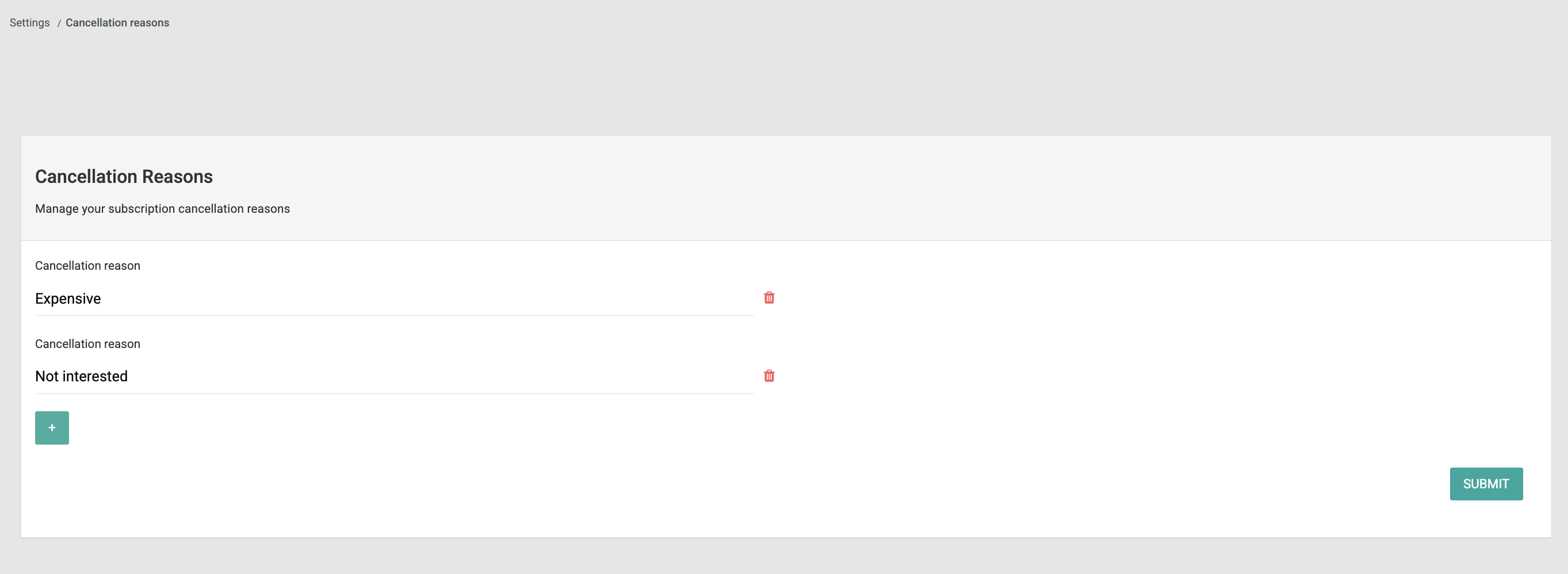 You can configure the list of cancellation reasons shown to customers when they cancel a subscription.